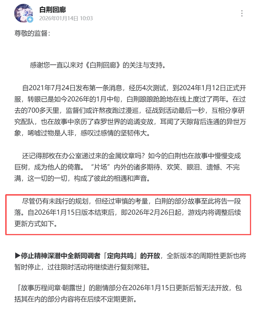 2026-01-16PG电子,PG电子官方网站,PG电子试玩,PG电子APP下载,pg电子游戏,pg电子外挂,pg游戏,pg电子游戏,pg游戏官网,PG模拟器,麻将胡了,pg电子平台,百家乐,捕鱼,电子捕鱼,麻将胡了2今日(1月14日),烛龙旗下手游《白荆回廊》官方突发公告,称游戏将从2026年1月15日版本结束,即2026年2月26日后,停止全新版本的周期性更新。但后续仍会保持一部分内容的一定频率更新,继续运营。