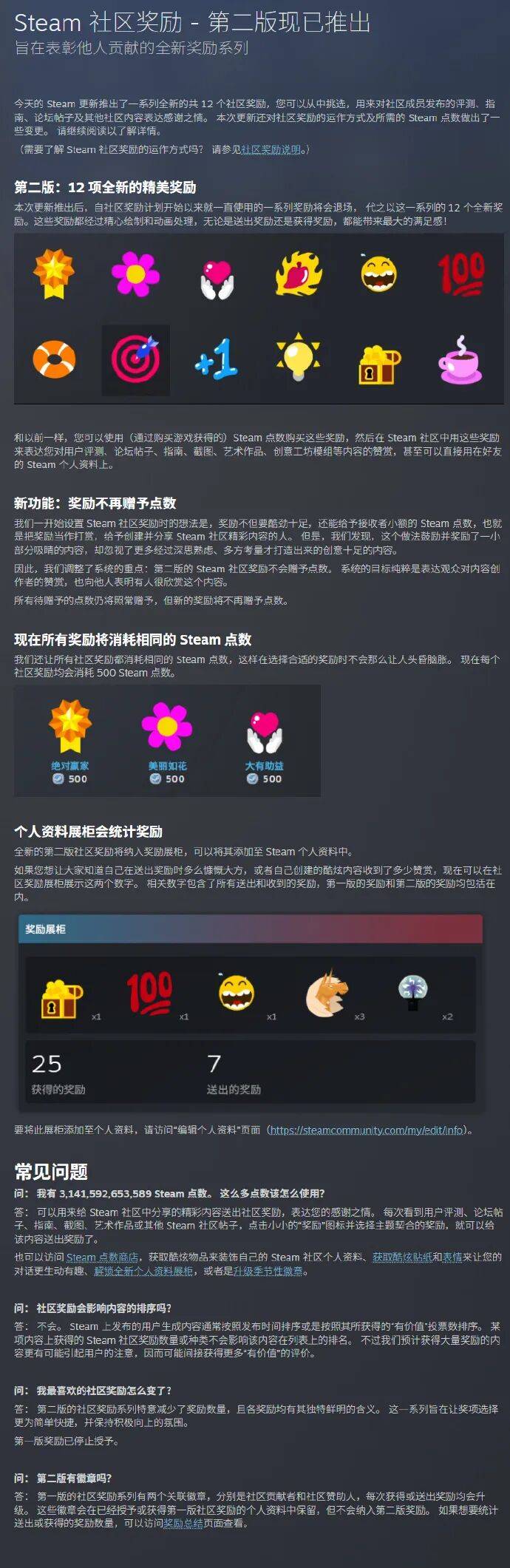Steam于今日(1月14日)更新了社区奖励,并对社区奖励的运作方式进行了调整。
