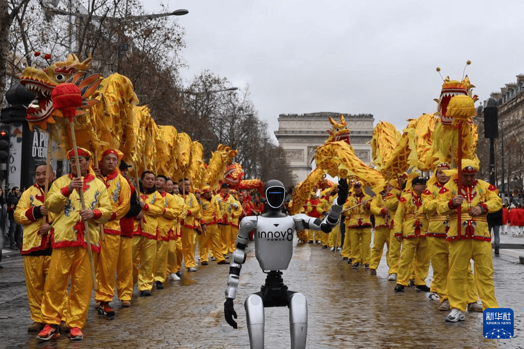 2月1日,法国巴黎香榭丽舍大街迎来第四届“欢乐春节满巴黎·龙狮贺岁舞香街”春节巡游活动。中国机器人首次在巡游表演中亮相,成为本届活动的一大亮点。巡游现场,机器人跟随方阵节奏有序行进,在行走中完成转身、挥手、点头等动作,并不时与沿途观众互动,吸引了大量市民和游客驻足观看、拍照记录,成为现场关注度和讨论度最高的表演项目之一。