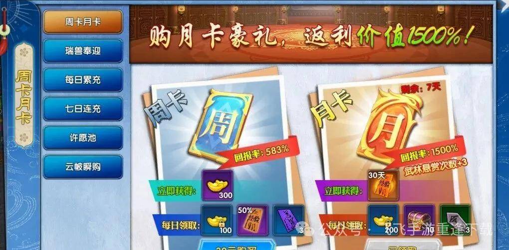 月卡对游戏体验的提升较为显著,尤其适合那些经常上线、打算长期深入游玩的新手。购买月卡后,玩家每日可领取一定数量的绑定元宝、金币或其他珍贵资源,日积月累,这些资源能在关键时刻派上大用场,比如用于购买强化材料、珍贵道具等。此外,月卡还可能附带一些特权,像增加每日任务次数(如武林悬赏任务可额外增加 3 次),这意味着玩家有更多机会获取经验和奖励,加速升级进程;或者享有专属的经验加成,让打怪、做任务获取的经验值更多,更快提升角色等级,解锁更多游戏功能与玩法。虽然月卡价格相对首充较高,但从长期收益来看,性价比极高,能为新手玩家提供稳定的资源支持与游戏便利。