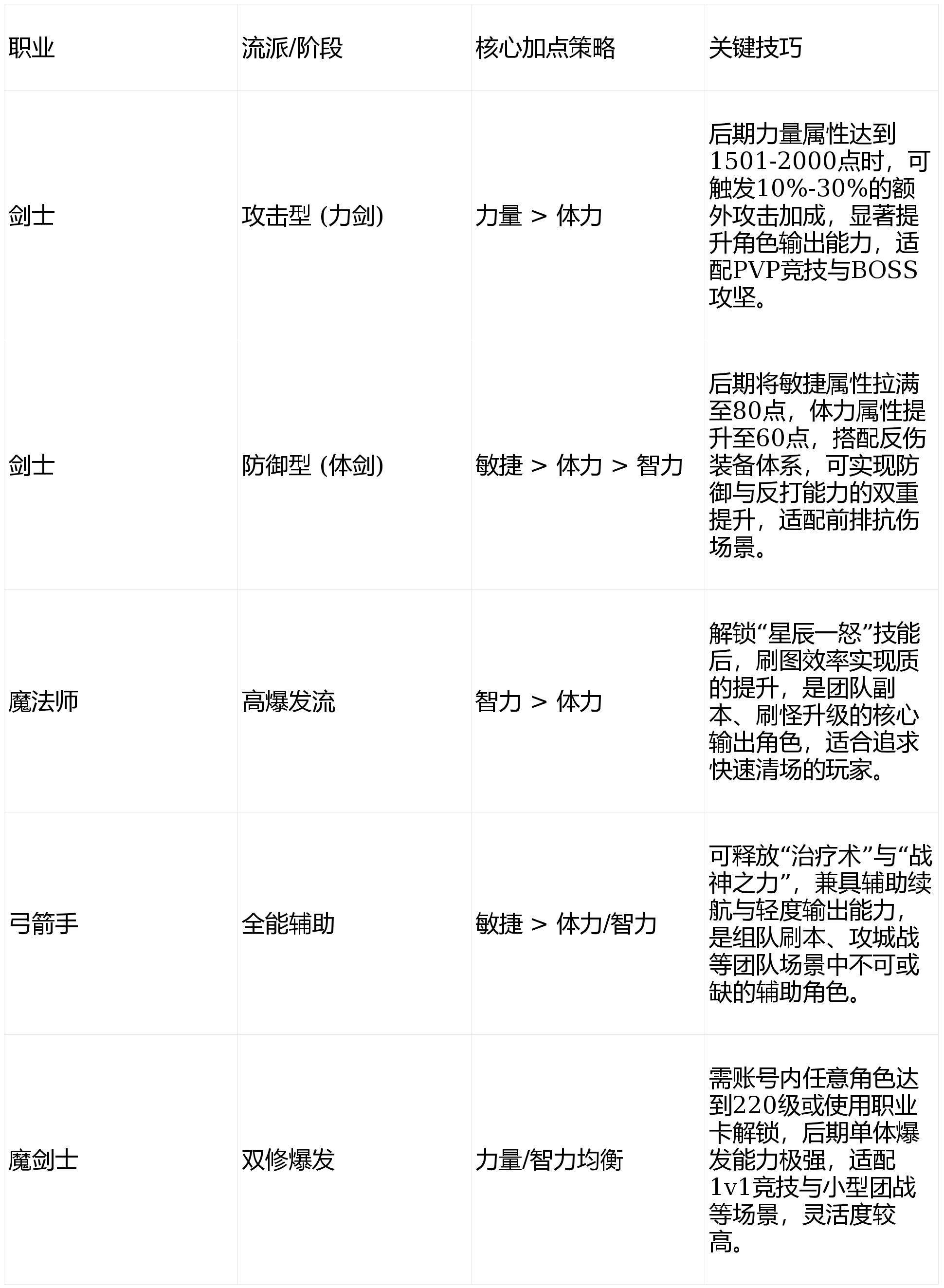 游戏内各职业均设有不同流派,适配多样化玩法场景,科学加点可最大化发挥职业优势,以下为各职业不同流派的核心加点策略与关键技巧,覆盖前期过渡至后期成型的全发育阶段。