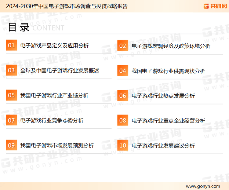 为确保电子游戏行业数据精准性以及内容的可参考价值,共研产业研究院团队通过上市公司年报、厂家调研、经销商座谈、专家验证等多渠道开展数据采集工作,并运用共研自主建立的产业分析模型,结合市场、行业和厂商进行深度剖析,能够反映当前市场现状、热点、动态及未来趋势,使从业者能够从多种维度、多个侧面综合了解当前电子游戏行业的发展态势。