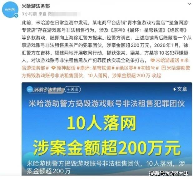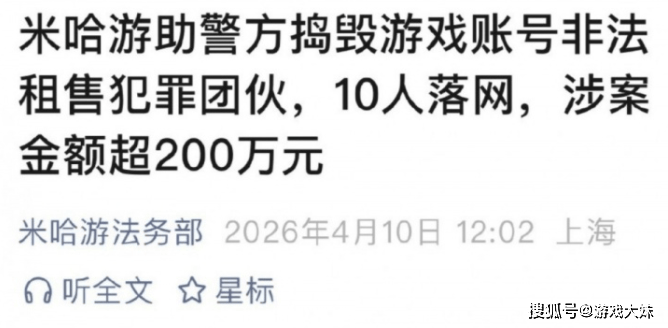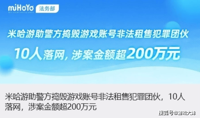 PG电子官网- PG电子试玩- APP下载米哈游打击账号租售行为10人团伙落网非法谋利多达200万