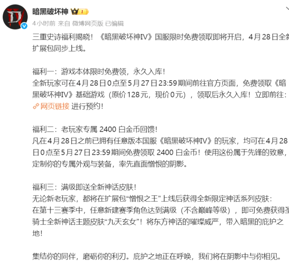 2026-04-21PG电子,PG电子官方网站,PG电子试玩,PG电子APP下载,pg电子游戏,pg电子外挂,pg游戏,pg电子游戏,pg游戏官网,PG模拟器,麻将胡了,pg电子平台,百家乐,捕鱼,电子捕鱼,麻将胡了2近期游戏圈子里火的消息估计就是《暗黑破坏神4》国服的福利了。官方为了庆祝新DLC“憎恨之.王“上线日深夜,只要去官方页面就能领到基础游戏。原来要花128元的东西,现在直接零元购入库,这种白嫖的机会确实挺香。