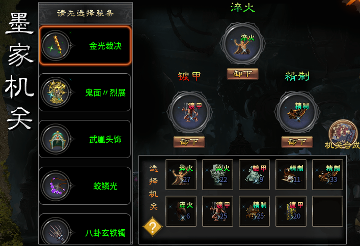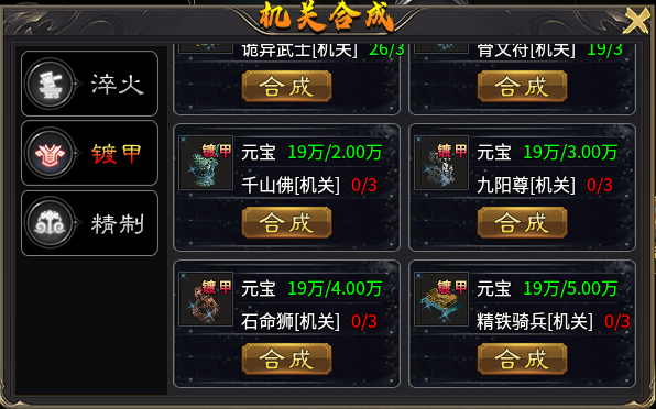 机关靠打怪掉,刷不出想要的?3个低级机关加元宝就能合成高级的,慢慢攒总能凑齐神装机关。