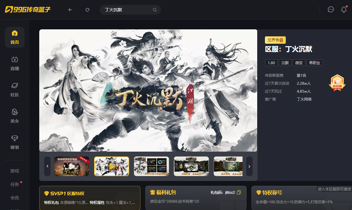 本服单职业设定省了选职业的纠结,所有玩家都能体验六大门派绝学,靠武学和装备搭配出专属流派,刷怪掉落的丹药、经书残卷、鉴定符,全是硬通货,散人靠肝也能攒够资源换绝学、搞鉴定。现在下载996传奇盒子搜索“丁火沉默”,领996传奇大神称号和每日礼包,去闯荡这个有血有肉的武侠江湖吧!